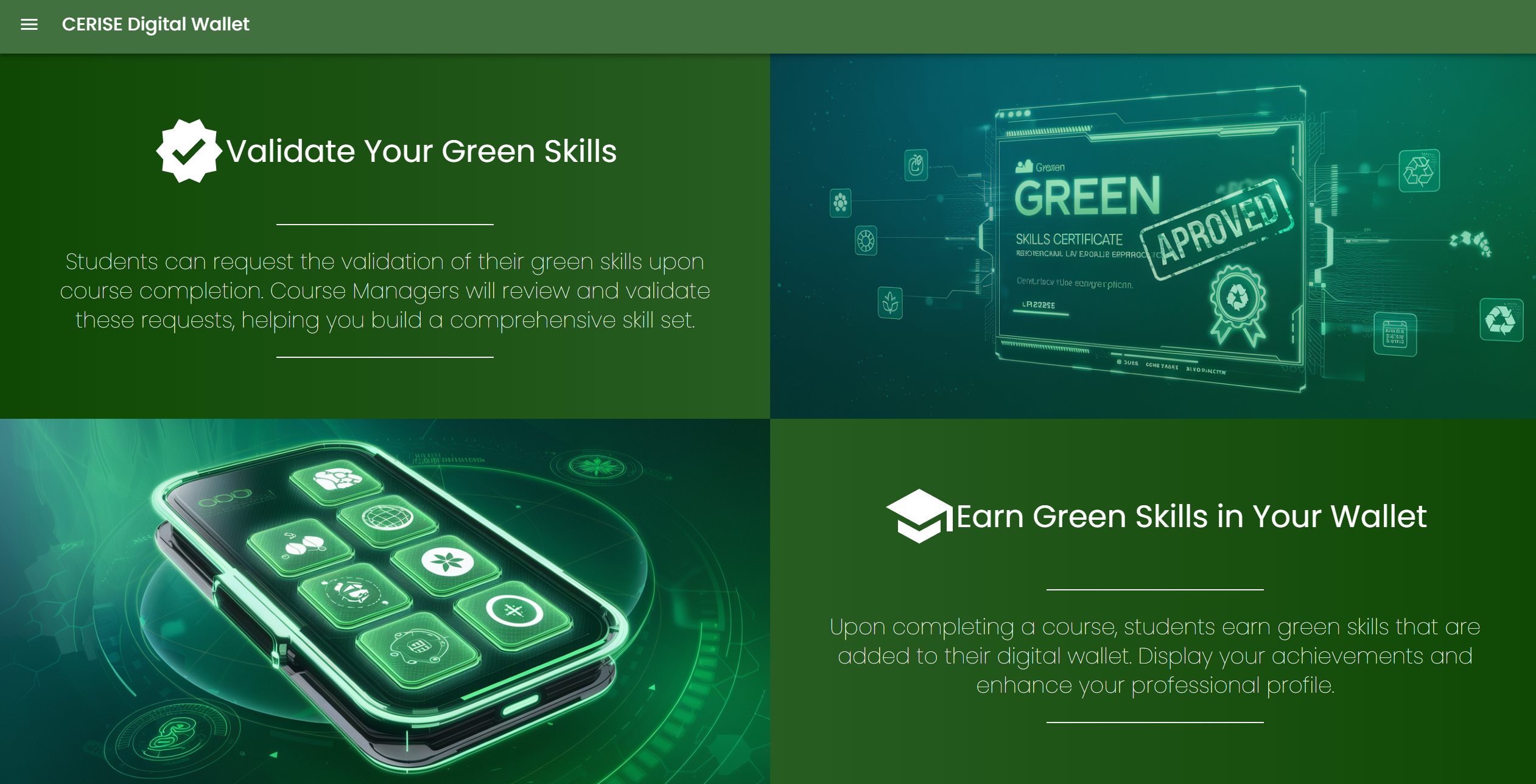 Cerise is a system prototype in the form of a digital wallet that offers students the opportunity to document and store their green skills at various degrees of skills acquisition and development.